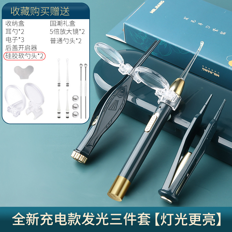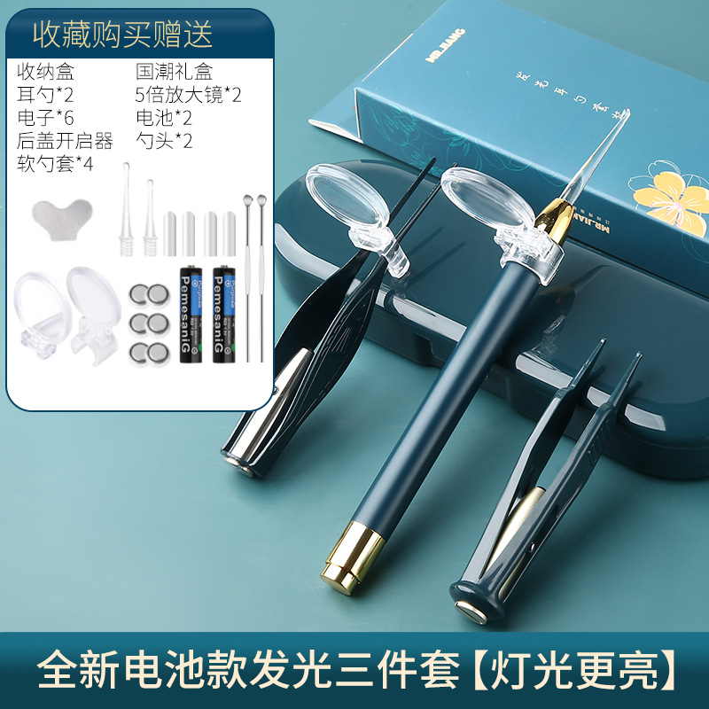 - Specifications: Dark green luminous ear spoon 3-piece set - rechargeable