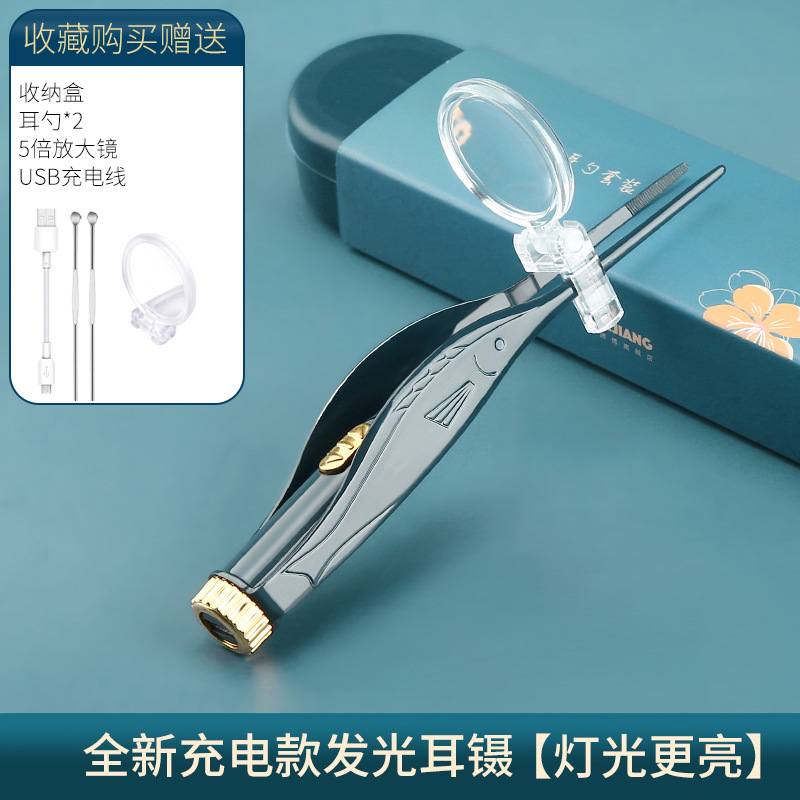 - Specifications: Rechargeable - dark green - luminous ear tweezers