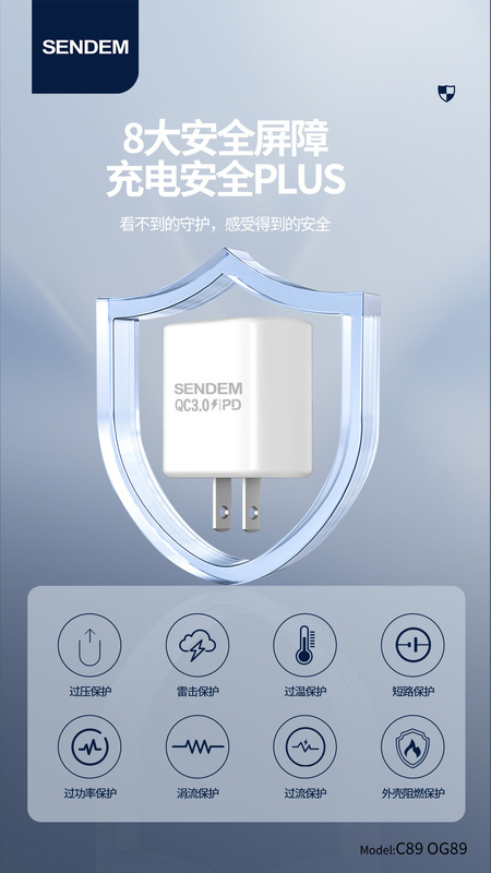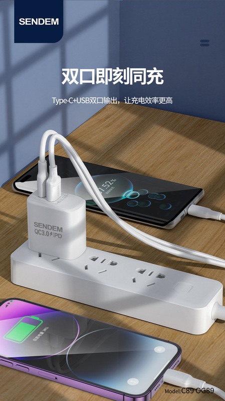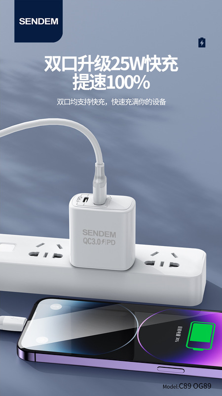 - 適用型號:OG89優能雙口PD25W+QC3.0歐規充電器