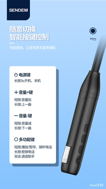 - 類型:E48數顯待機王耳塞式藍牙耳機