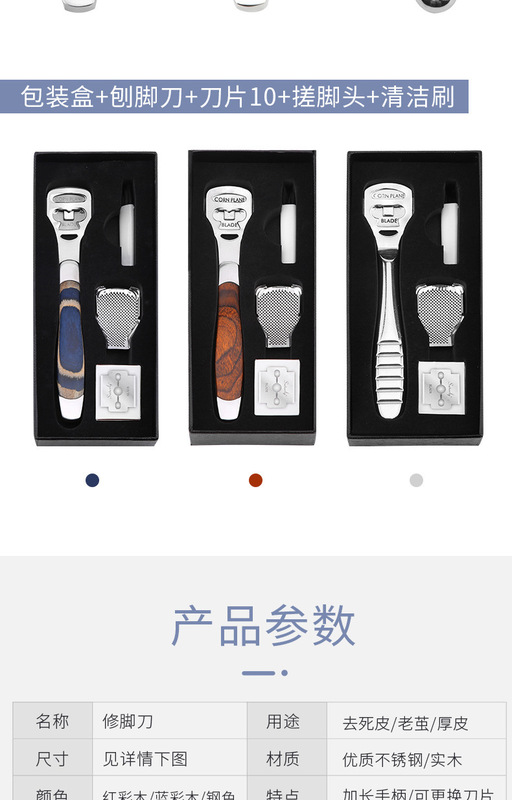 - Specification: Wooden-handled foot file + rubber box + file shell + blade