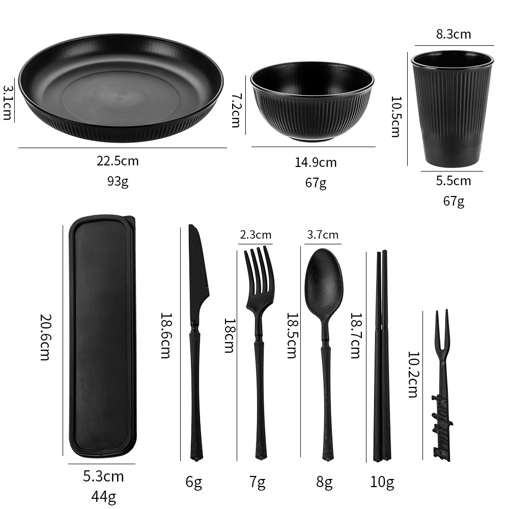 - 規格:23盤15碗7.5水杯刀叉勺筷子水果叉便攜盒