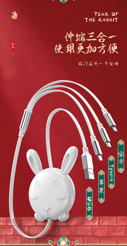 - 型號:兔年一拖三裸線白