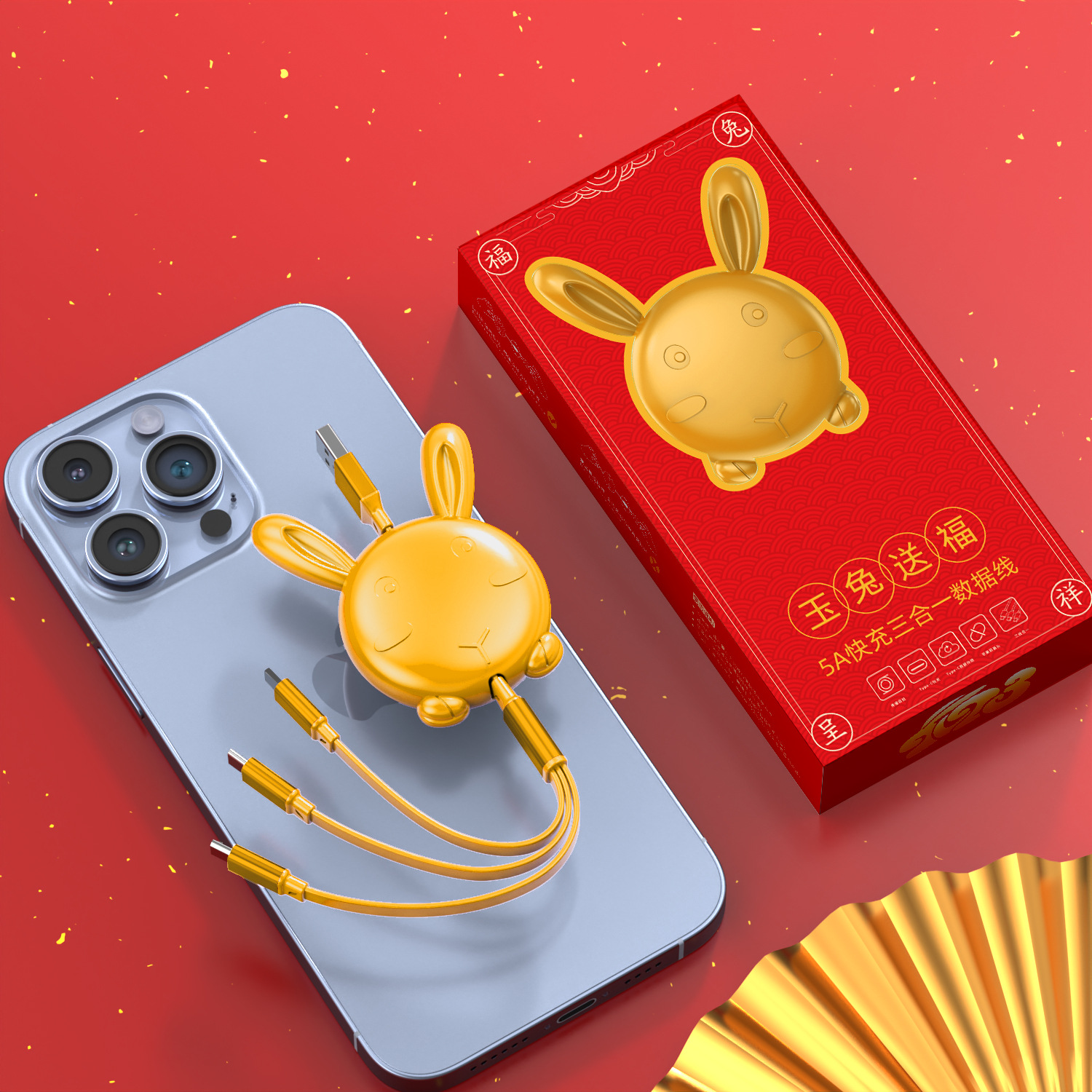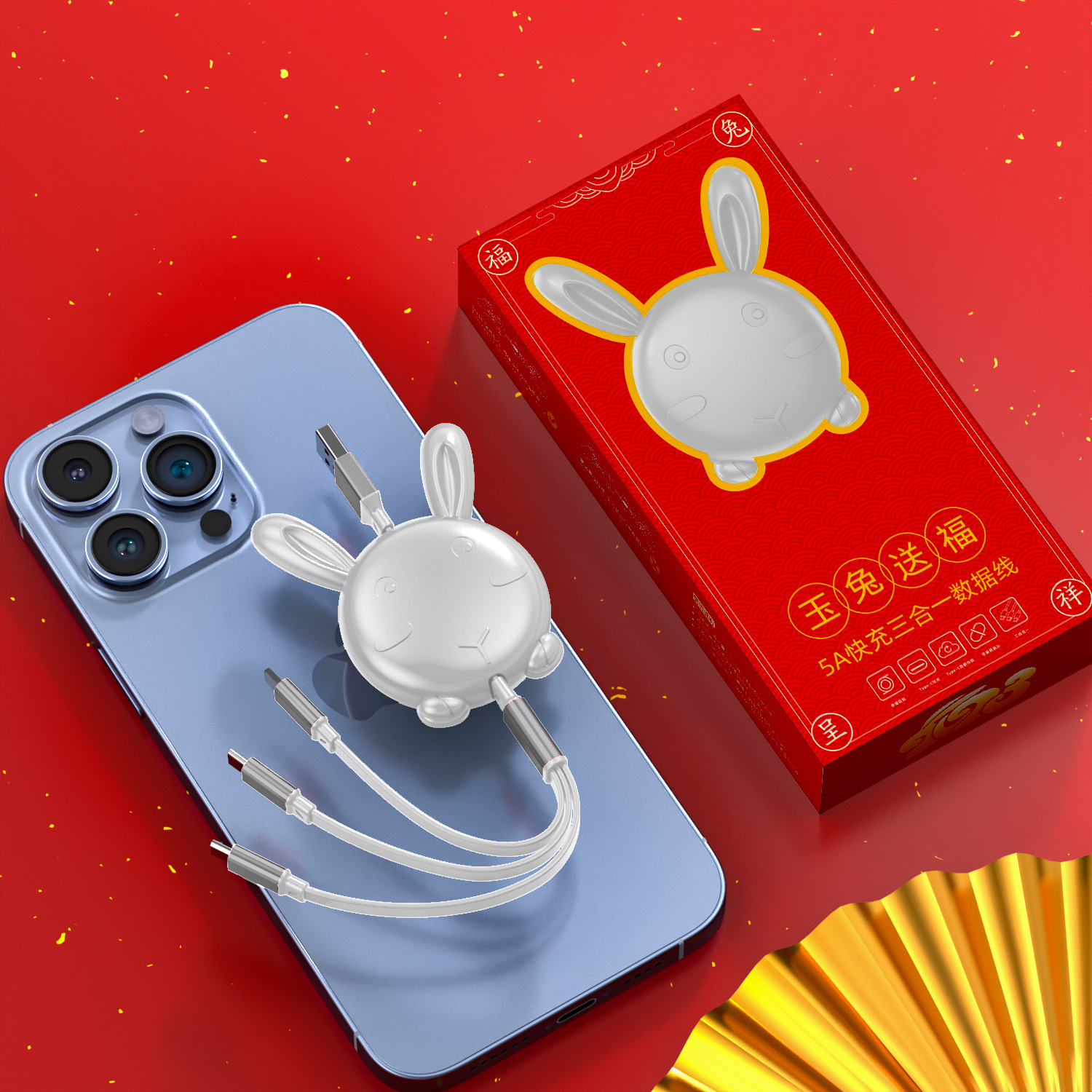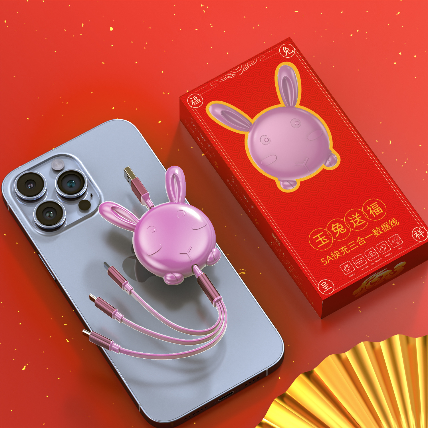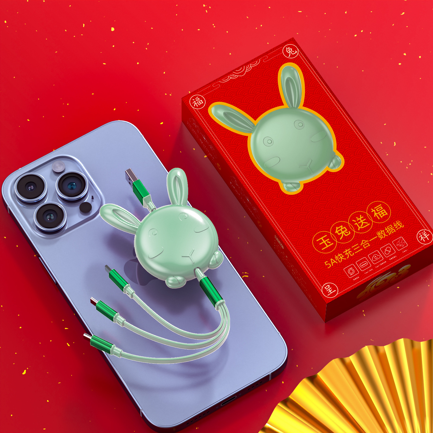 - 型號:兔年一拖三裸線紅