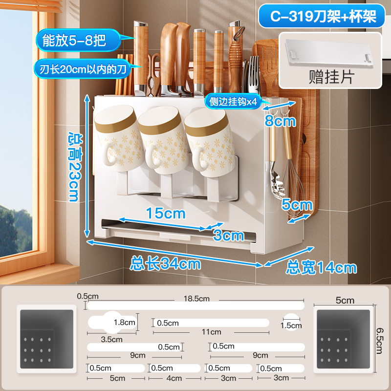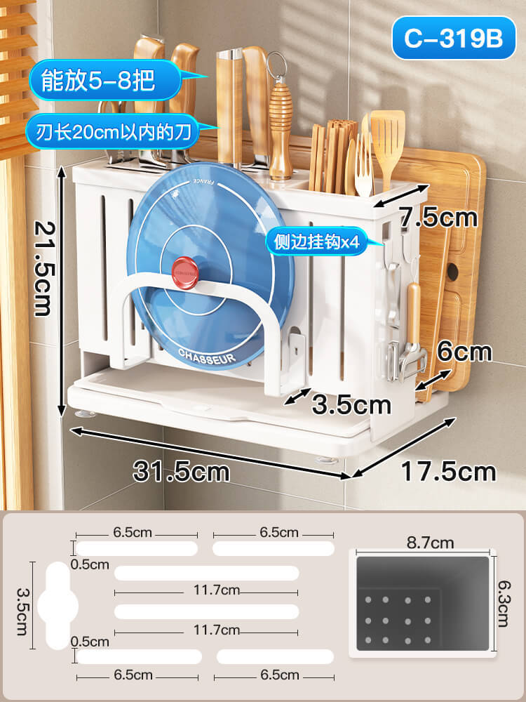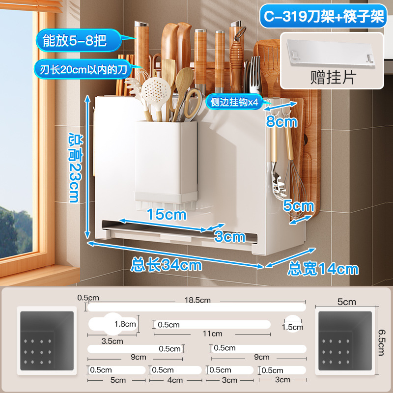 - Number of layers (specifications): Knife holder - white - wall hanging (with 4 hooks) + magnetic chopstick holder