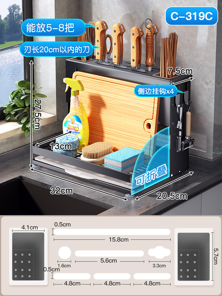 - Number of layers (specifications): [Piano Black] Double chopstick barrel dishcloth knife holder - countertop model
