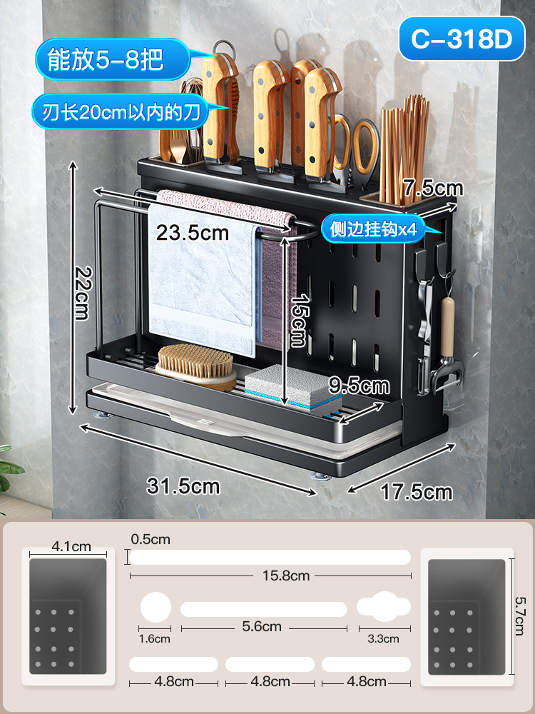 - Number of layers (specifications): [Piano Black] Double chopstick barrel dishcloth knife holder - wall hanging model