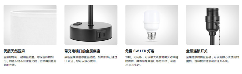 - Lamp base material: Metal
