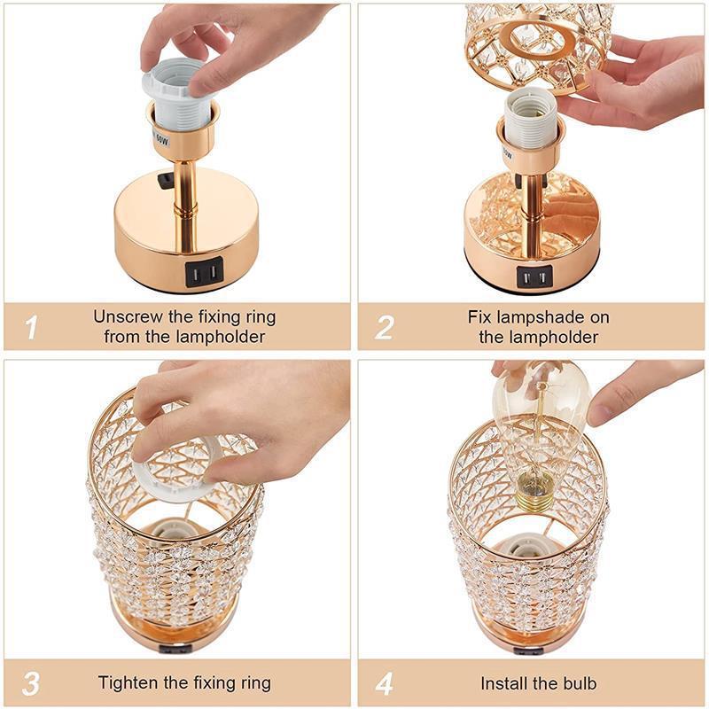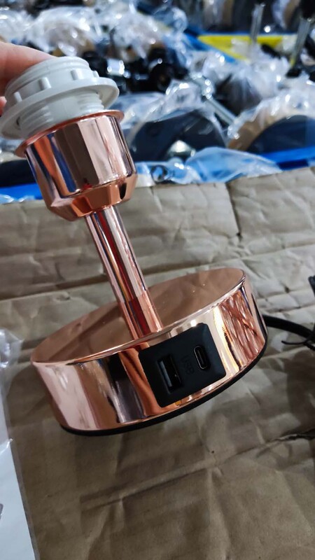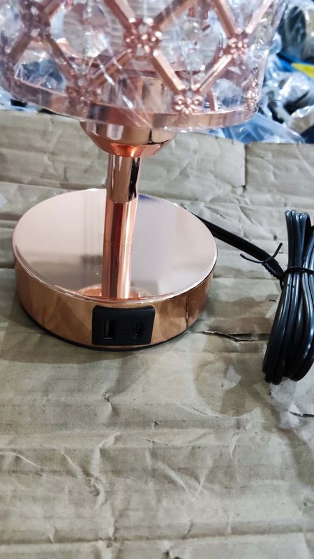 - 規格:美規,雙USB,觸摸三檔調光,T45專用燈泡,2孔插座1個