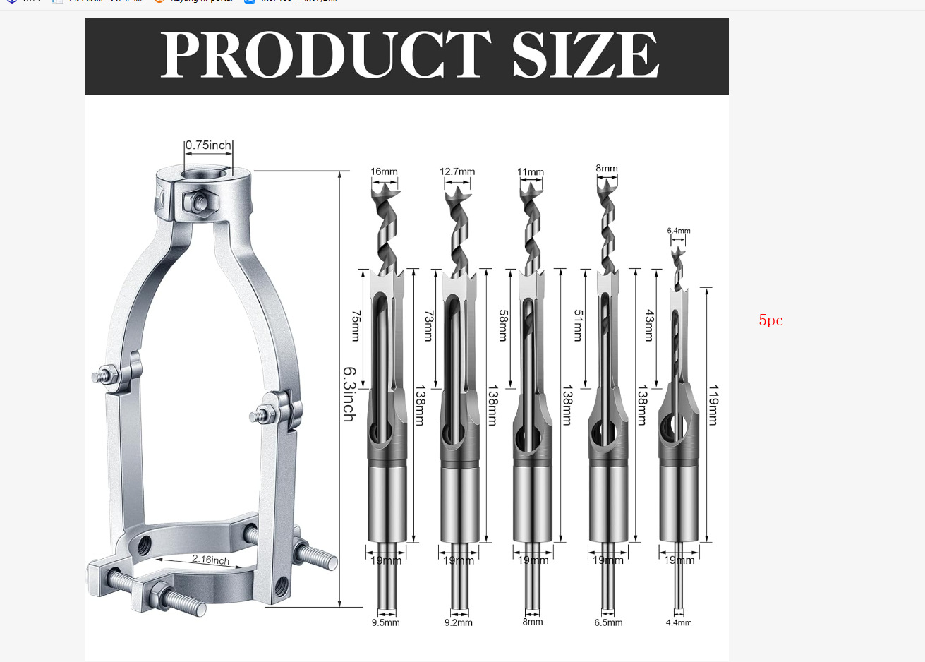 - Model: 5pcs(6.4+8+11+12.7+16)+bracket