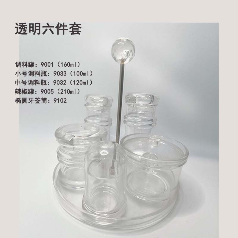 - Specifications: 6-piece round seasoning jar set (9036/9005/9101/9001/9033/9071)