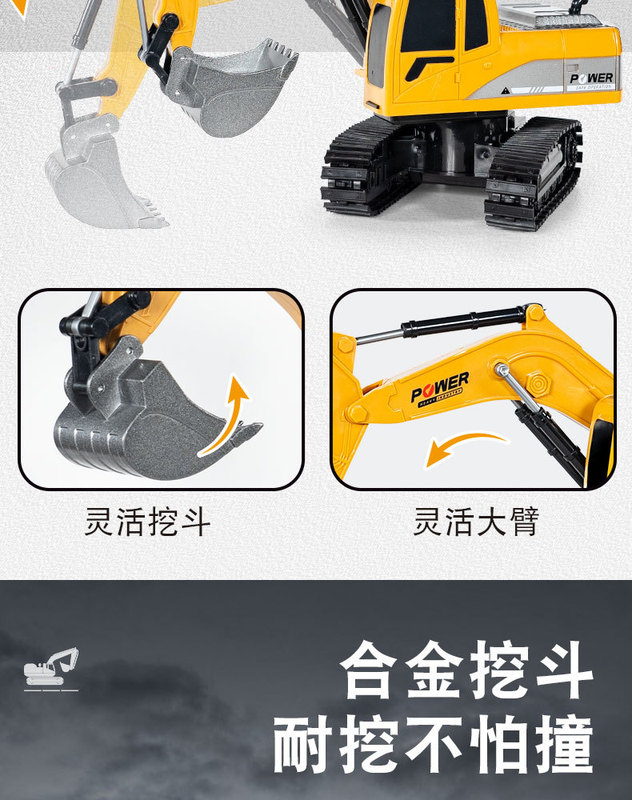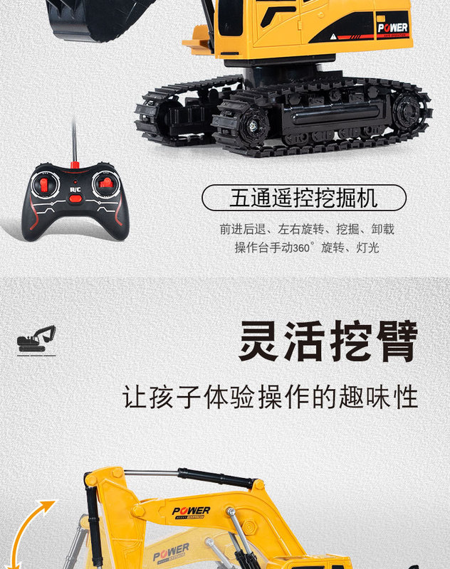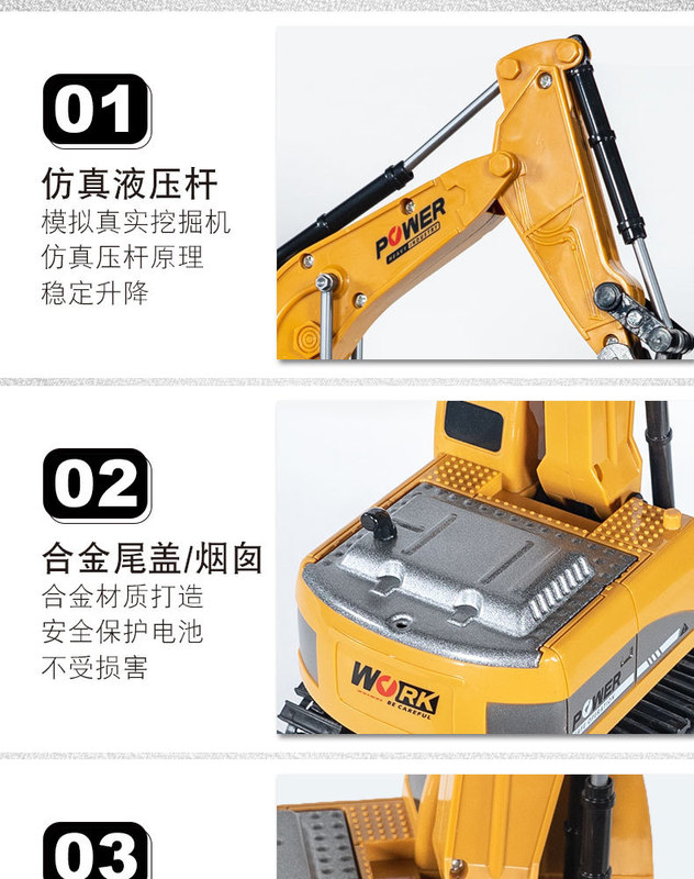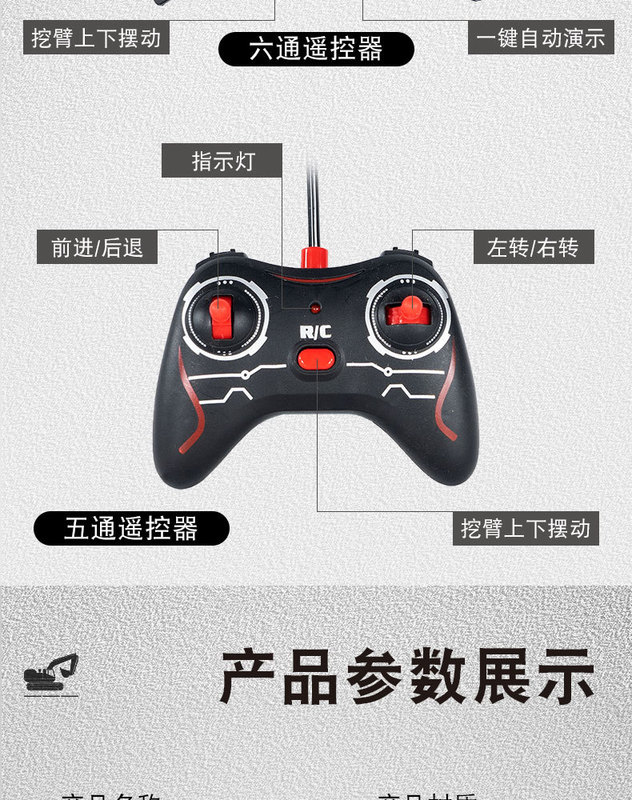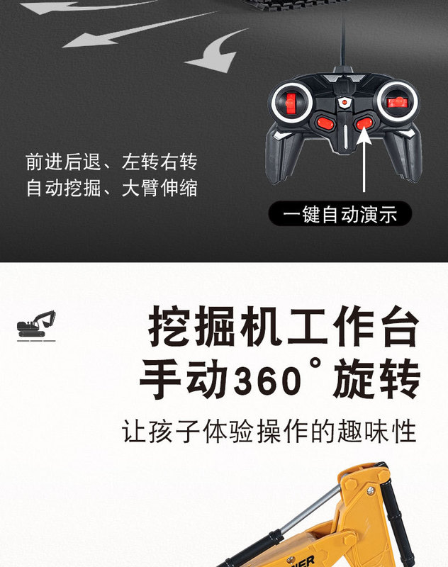 - Features: Six-way alloy remote control excavator