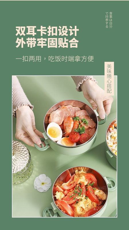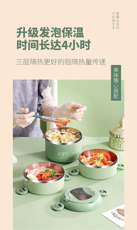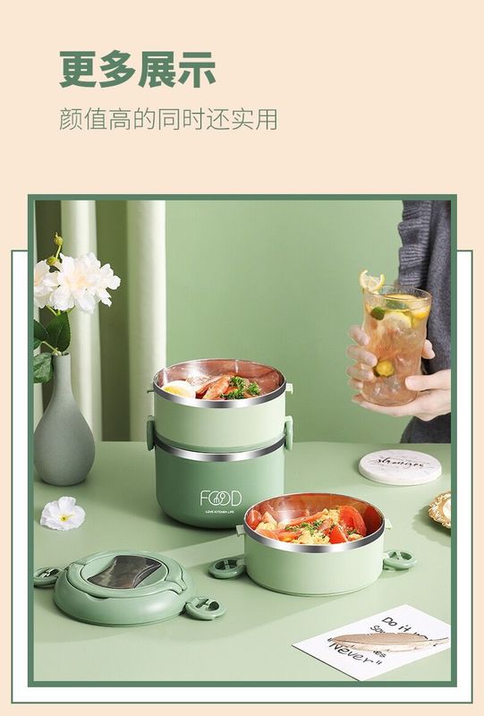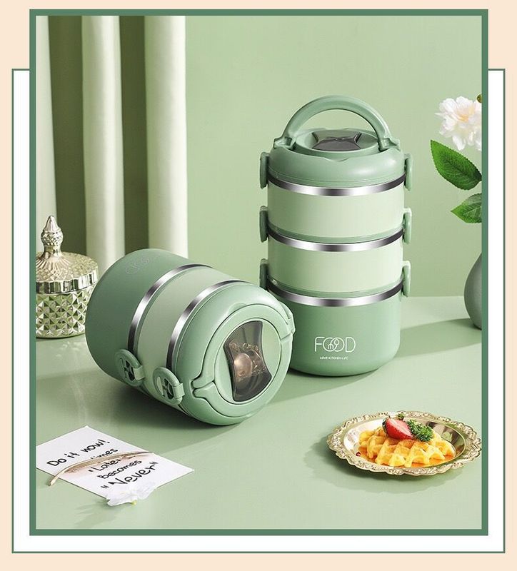 - 規格:綠色-三層提手飯盒(帶摺疊餐具)