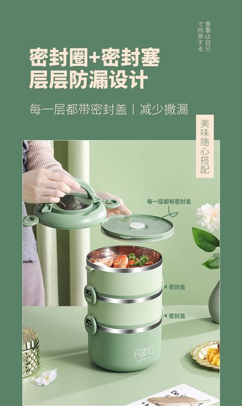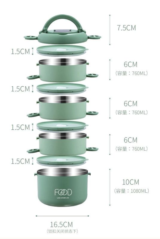 - 規格:綠色-五層提手飯盒(帶摺疊餐具)