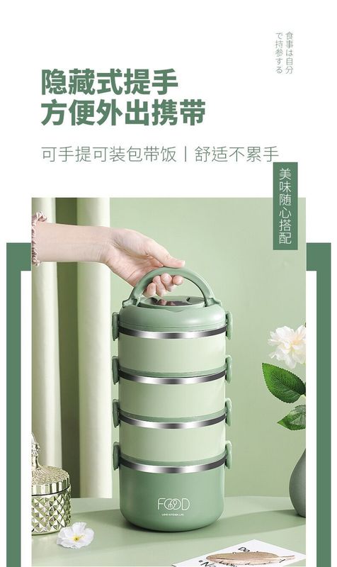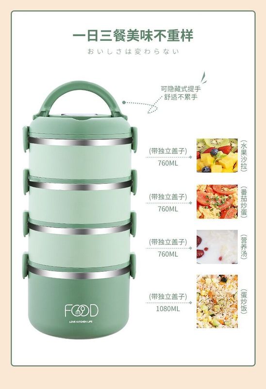- 規格:綠色-四層提手飯盒(帶摺疊餐具)
