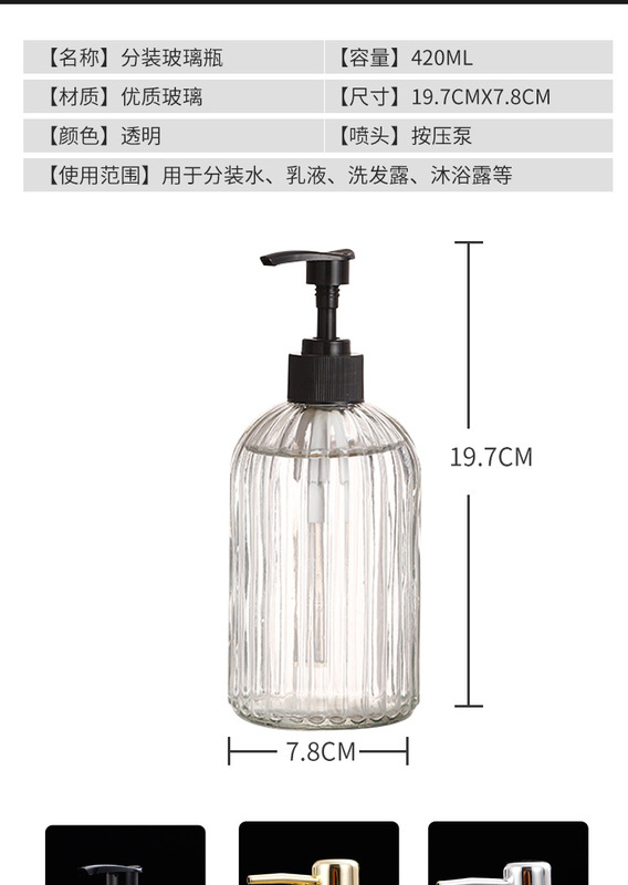- 規格:透明色瓶子+塑料電鍍銀色噴頭