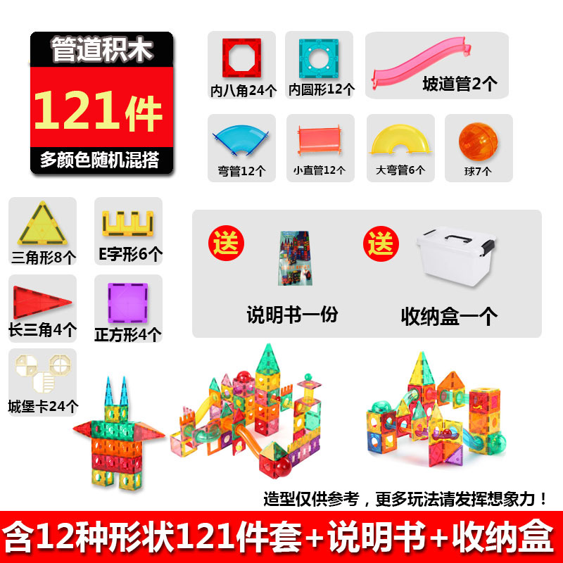 - Specifications: 121-piece set of pipe magnetic building blocks