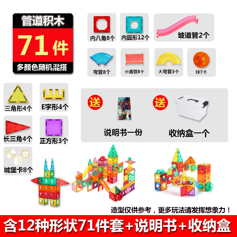 - Specifications: 71-piece set of pipe magnetic building blocks