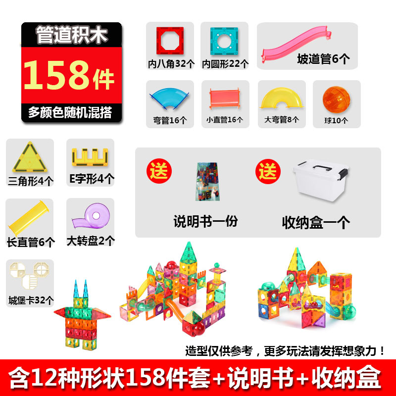 - Specifications: 158-piece set of pipe magnetic building blocks