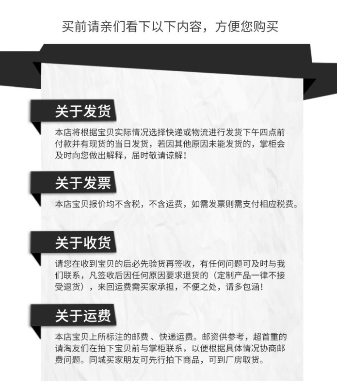 Delivery time: For products in stock, they will be shipped within 3 working days (excluding holidays) after you place your order and make payment. You will receive our notification after shipment.