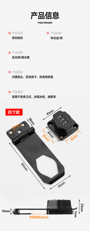 - Specification: 4-inch Password Lock Black (Dual Installation with Screws and Adhesives)