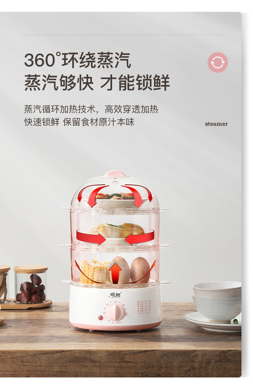 - Number of layers of electric steamer: two layers