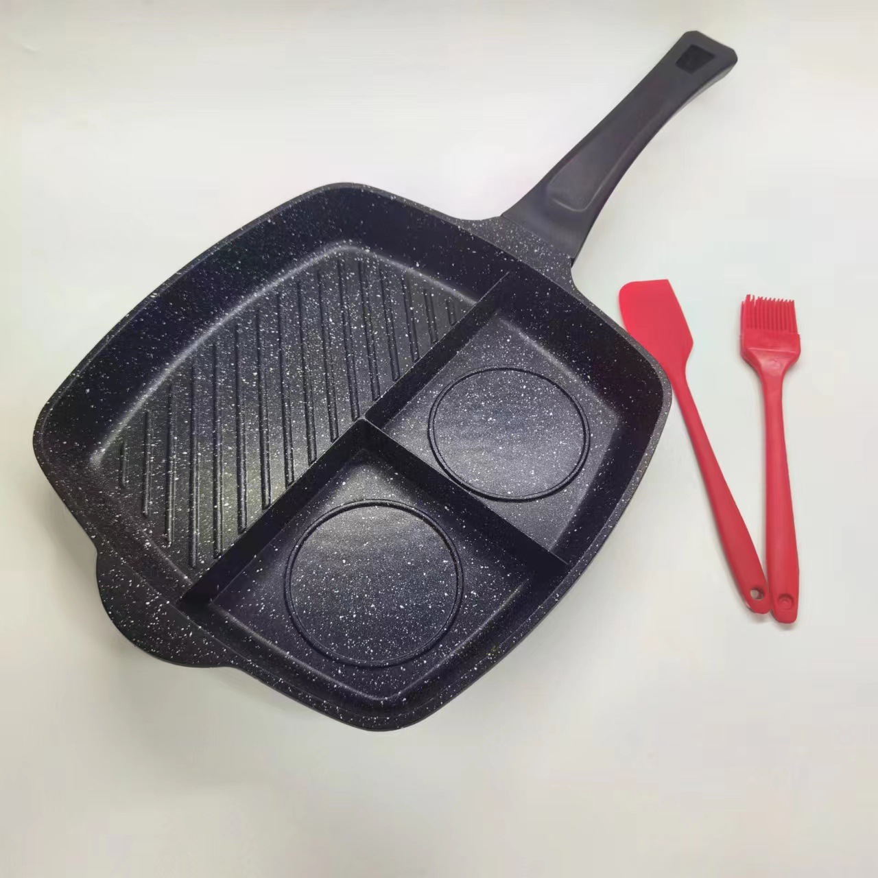 - Specifications: 26-inch three-in-one steak pan, universal model + oil brush and scraper