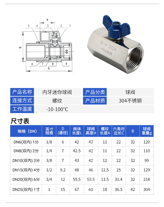- Specification Model: 1-inch Double Internal Thread