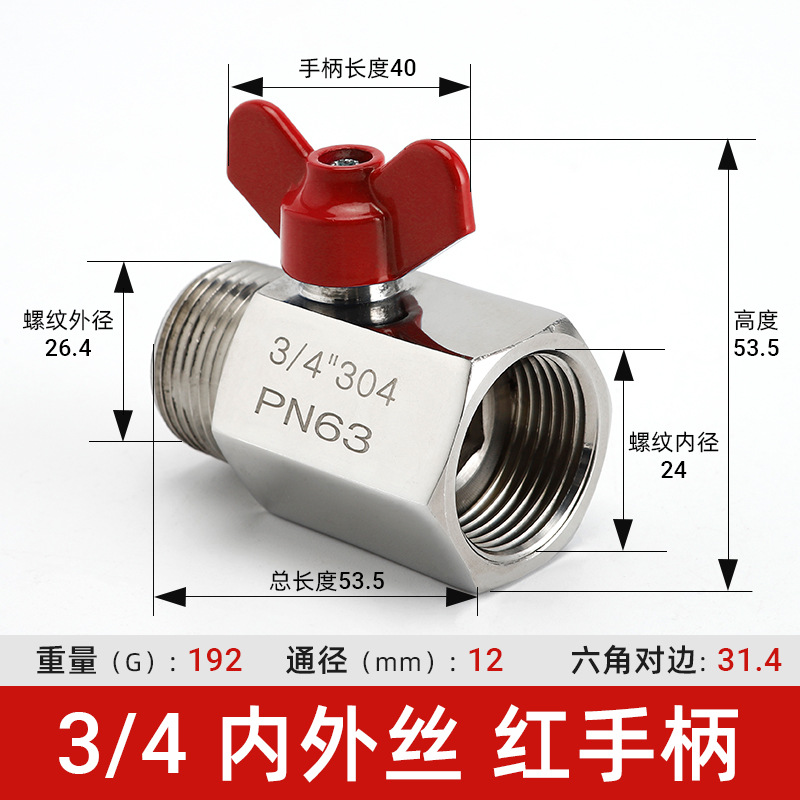- Specification Model: 3/4 Internal/External Thread