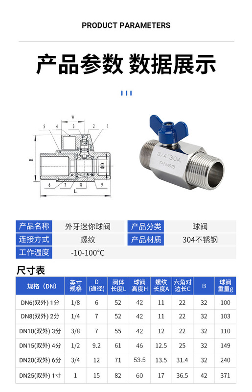- Specification Model: 1/8 Double External Thread
