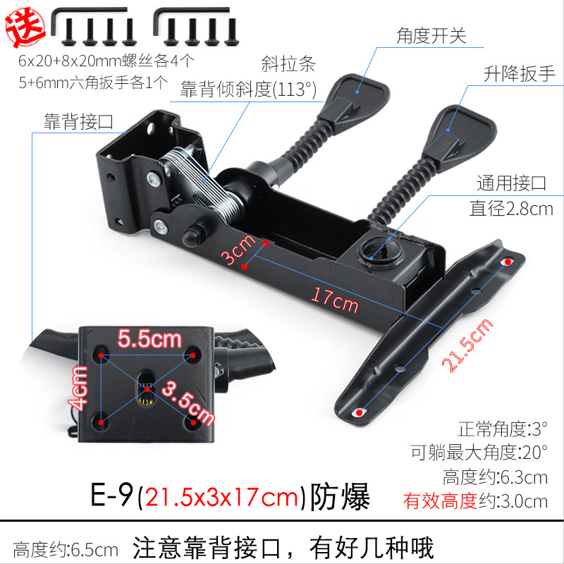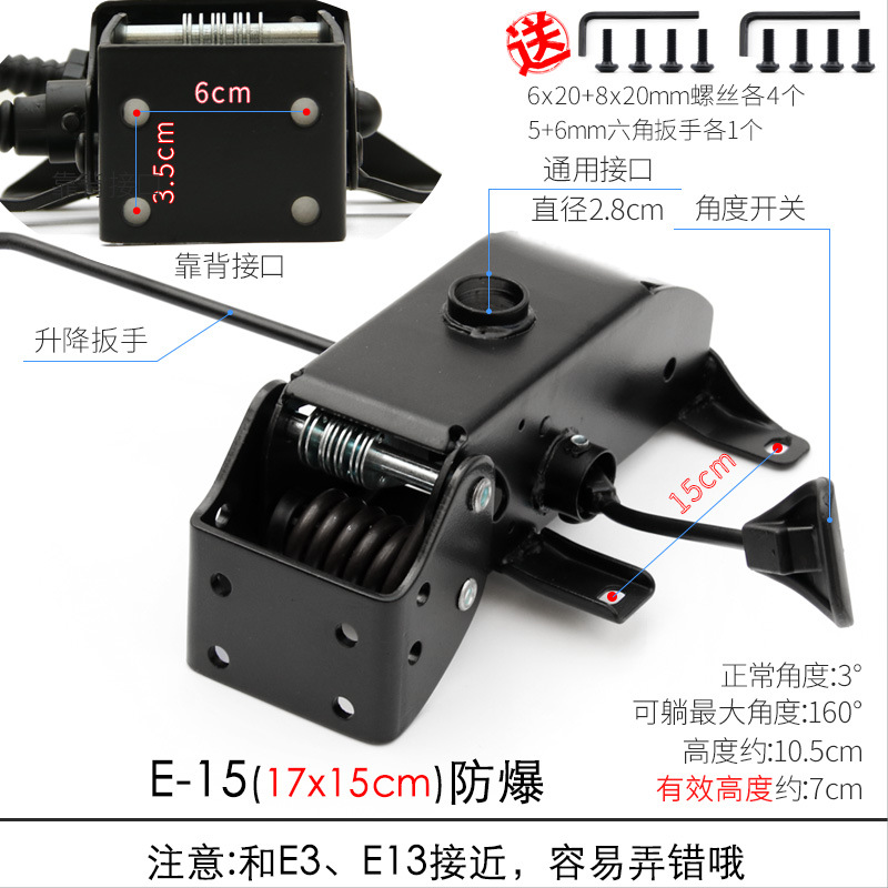 - Specifications: E-11 backrest interface 3 holes/thickness 2.1mm/160°