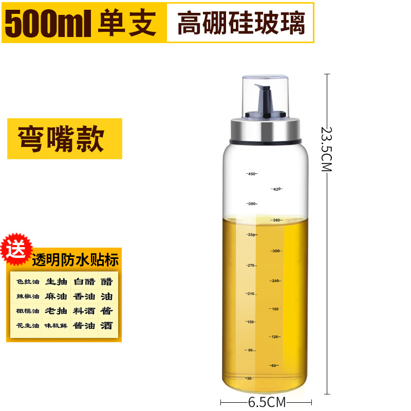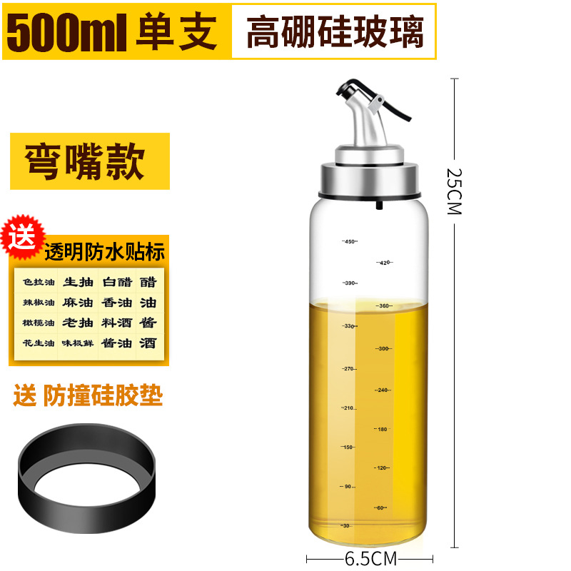 - Capacity: Borosilicate glass curved oil spout 500ml (comes with 60 anti-collision sleeve) per piece