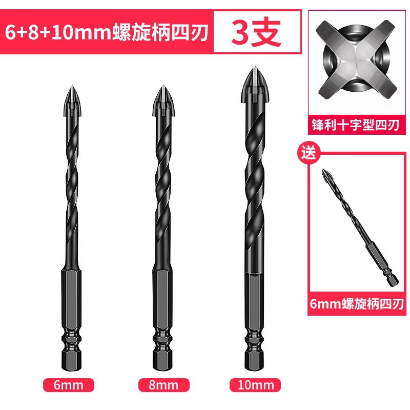 - Model: 6+8+10 spiral shank 3 pieces with 6mm 1 piece