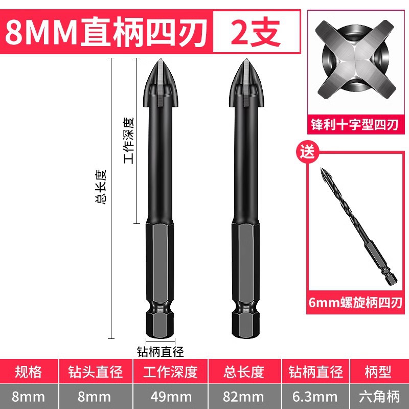 - Model: 6+6+8+8 straight shank with 6mm 1 piece