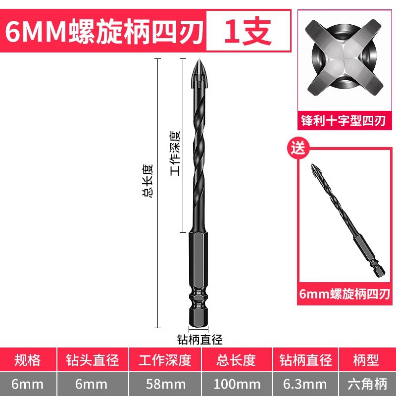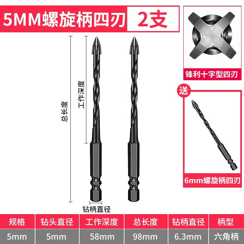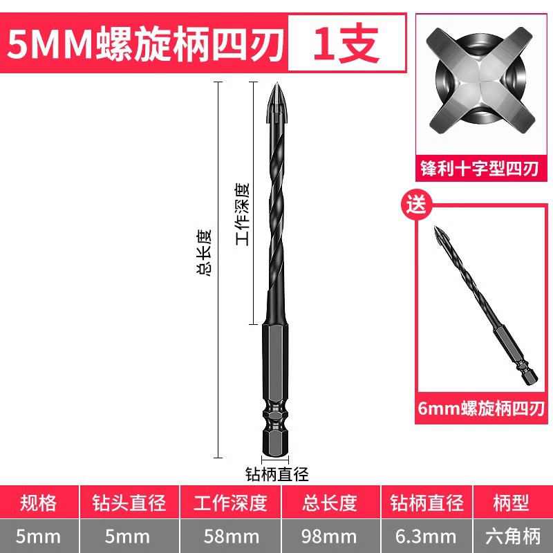 - Model: 5+6+8+10+12 spiral shank with 6mm 1 piece