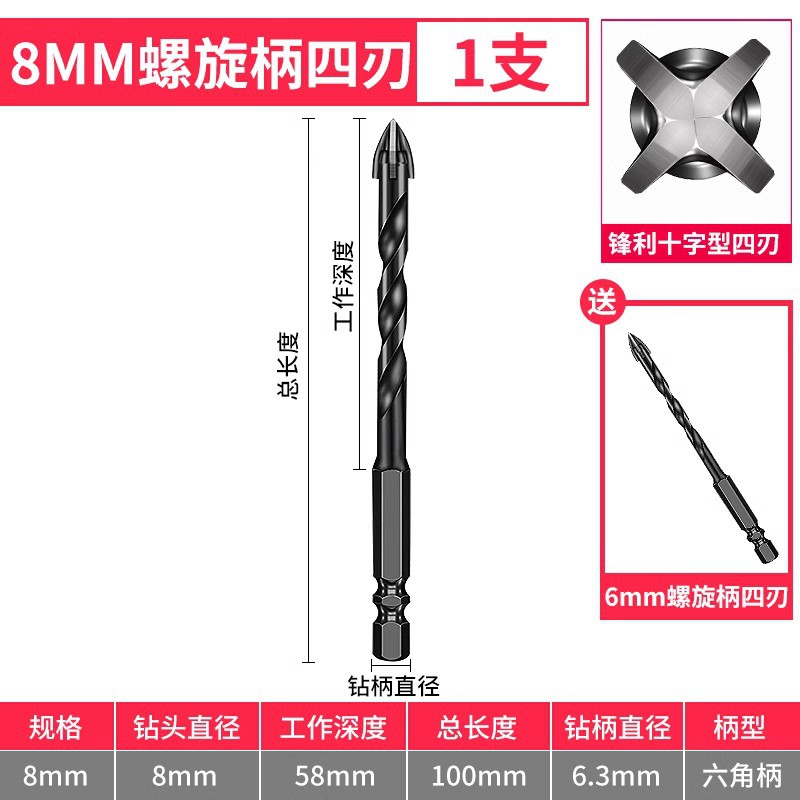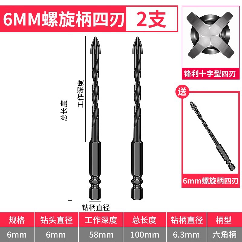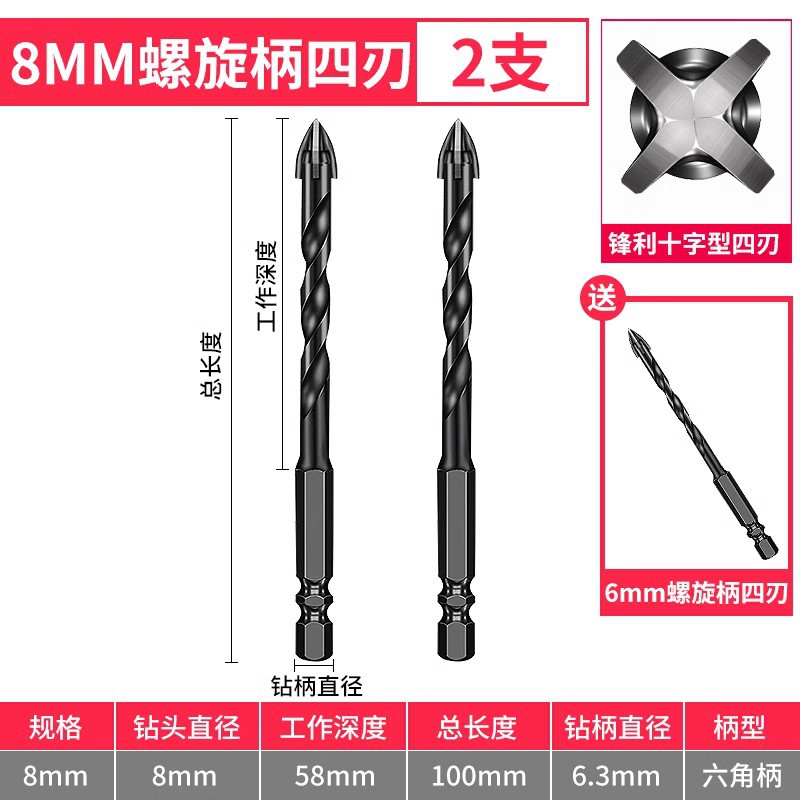 - Model: 6+6+8+8 spiral shank with 6mm 1 piece