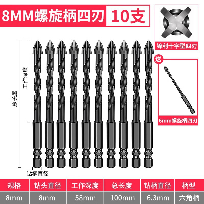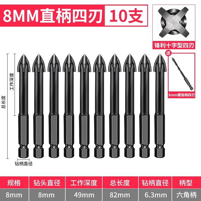 - Model: 8mm straight shank 10 pieces with 1 piece 6mm