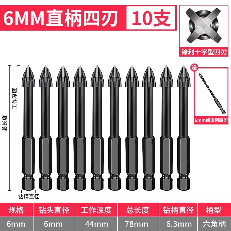 - Model: 6mm straight shank 10 pieces with 1 piece 6mm