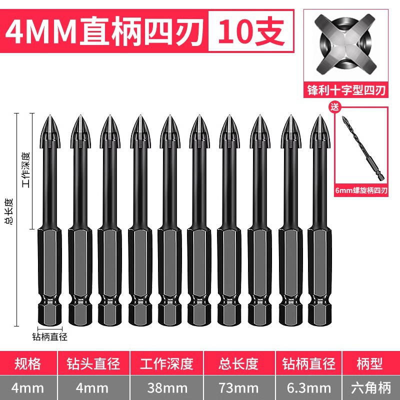 - Model: 4mm straight shank 10 pieces with 1 piece 6mm