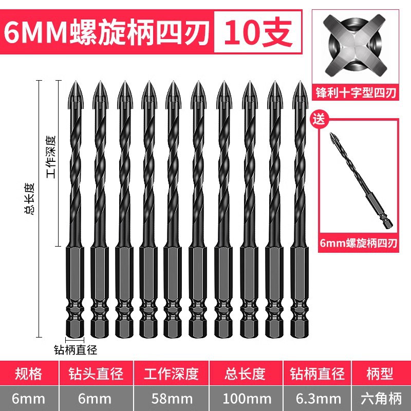 - Model: 6mm spiral shank 10 pieces with 1 piece 6mm