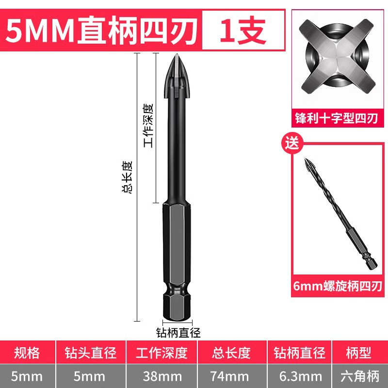 - Model: 5mm straight shank 2 pieces with 1 piece + 6mm