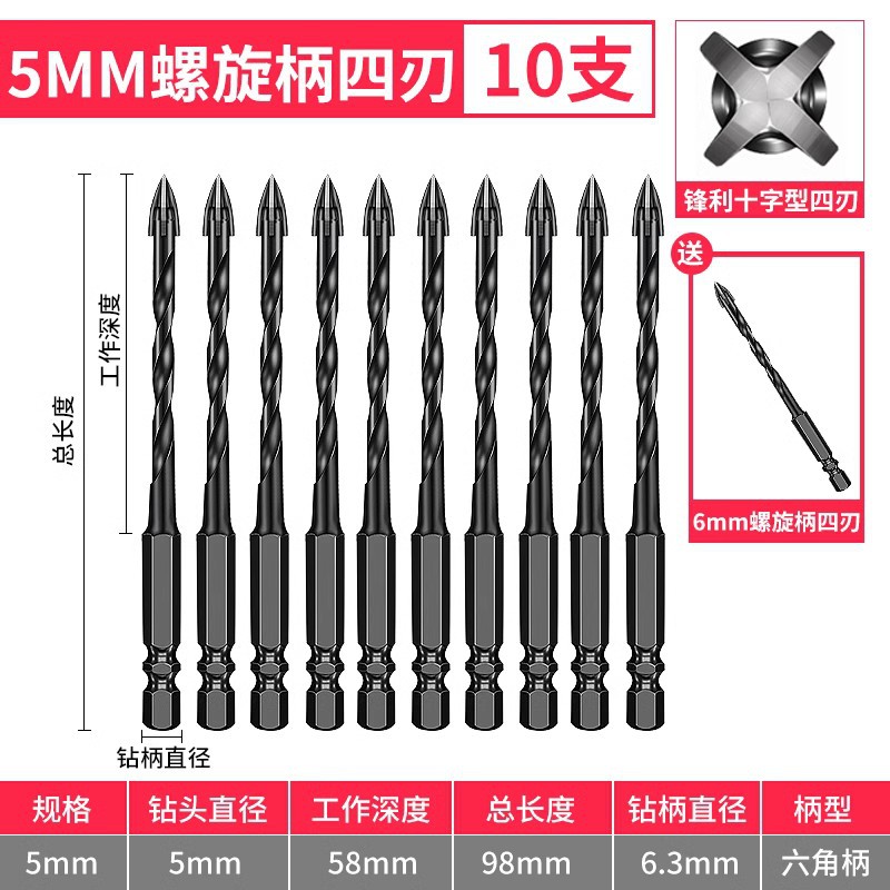 - Model: 5mm spiral shank 10 pieces with 1 piece 6mm