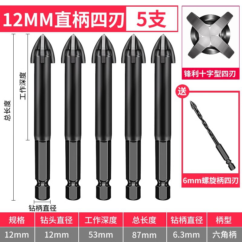 - Model: 12mm straight shank 5 pieces with 1 piece 6mm