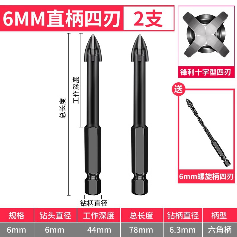- Model: 6mm straight shank 2 pieces with 1 piece 6mm