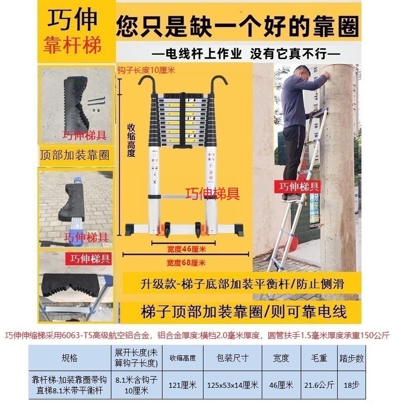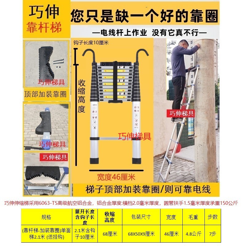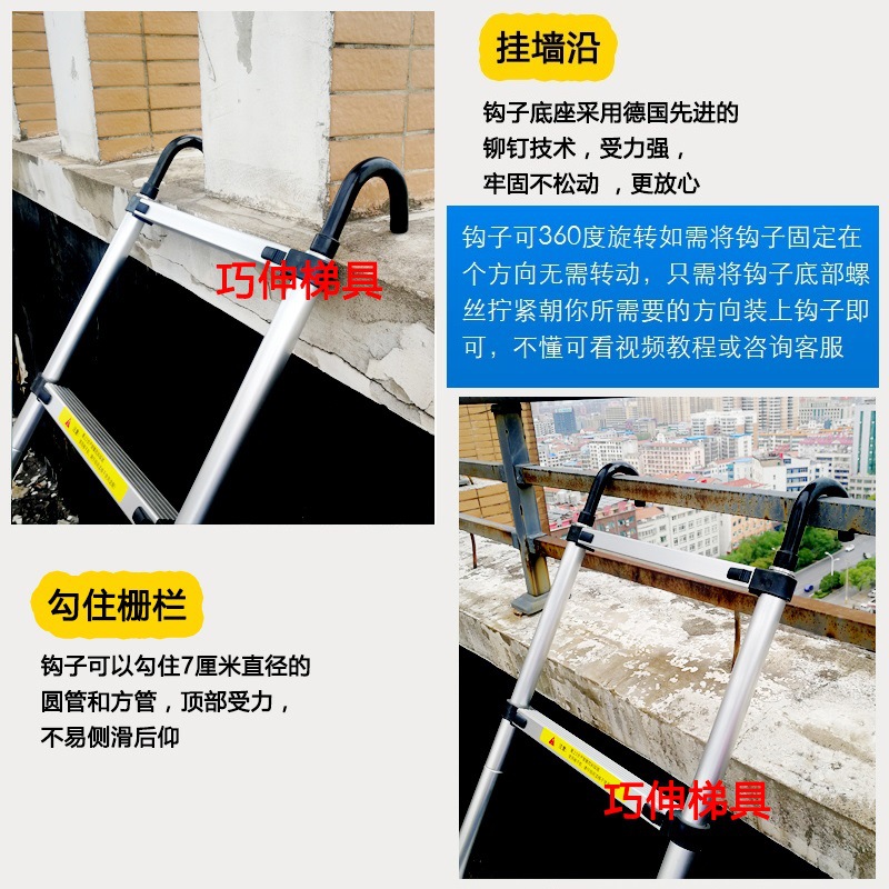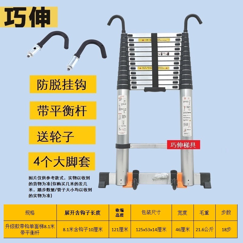 - Number of Steps: Ladder with side rail and hook installation, straight ladder 2.1m (including hook height)