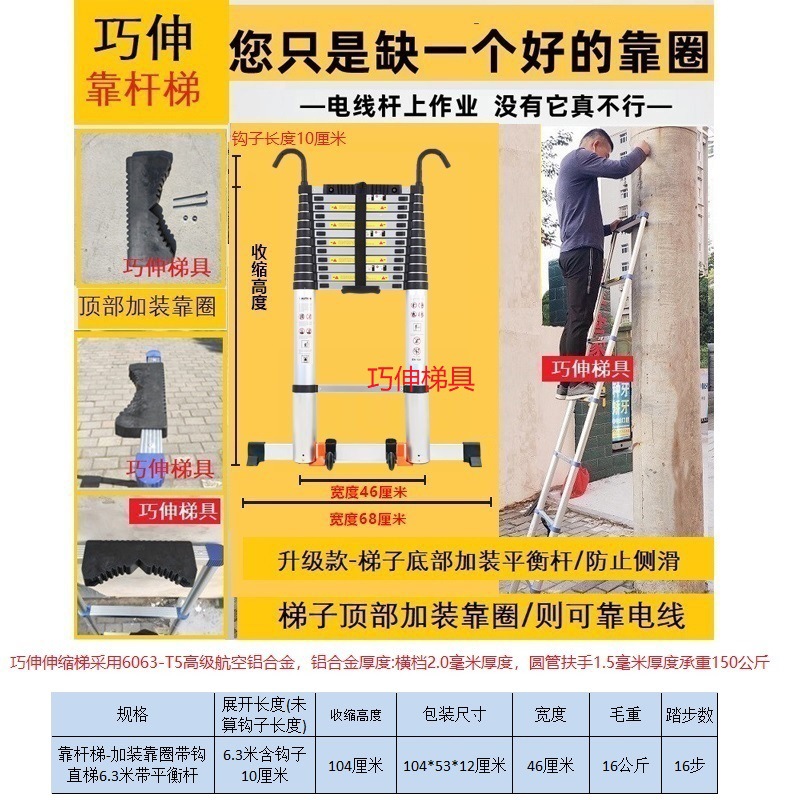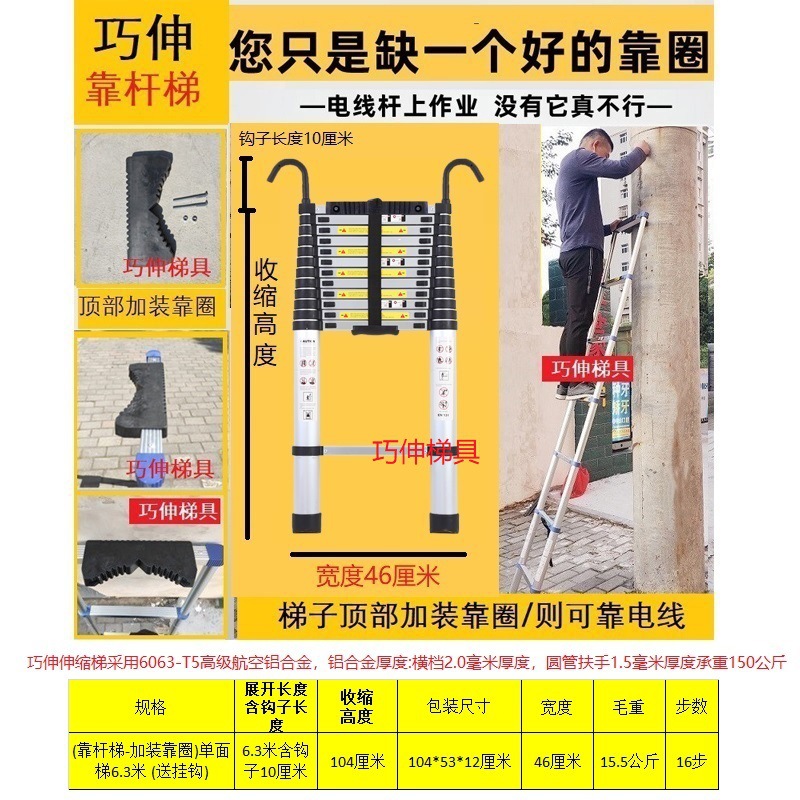 - Number of Steps: Ladder with side rail and hook installation, straight ladder 6.3m (including hook height)