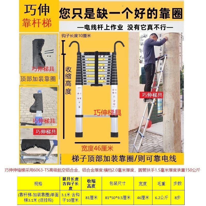 - Number of Steps: Ladder with side rail and hook installation, straight ladder 3.1m (including hook height)