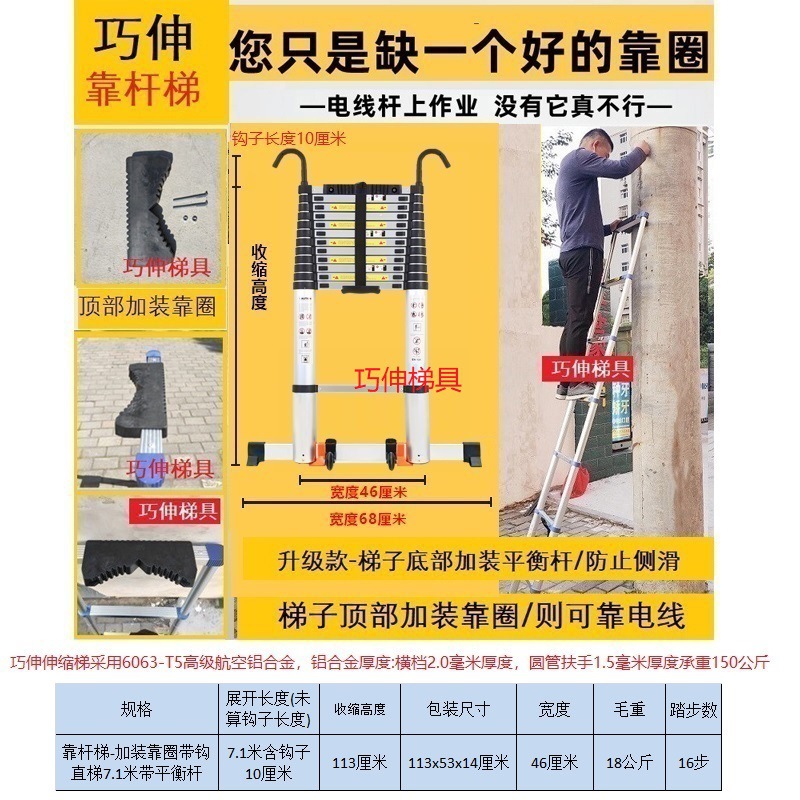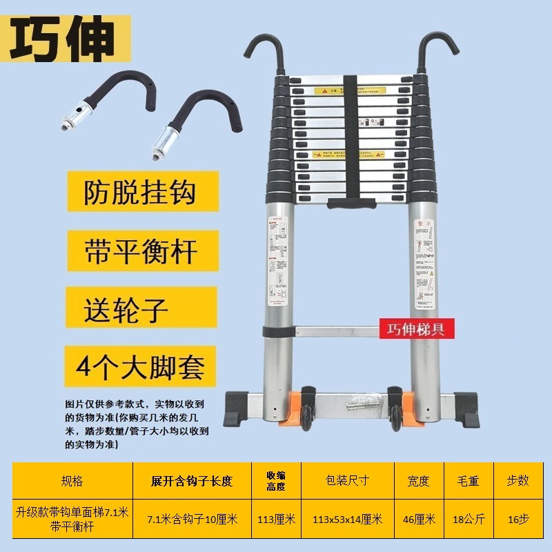 - Number of Steps: Ladder with hook and balance bar, straight ladder 7.1m (including hook height)