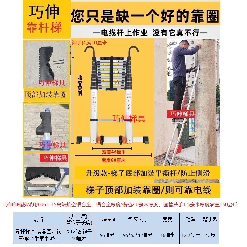 - Number of Steps: Ladder with side rail and hook installation, straight ladder 5.1m (including hook height)