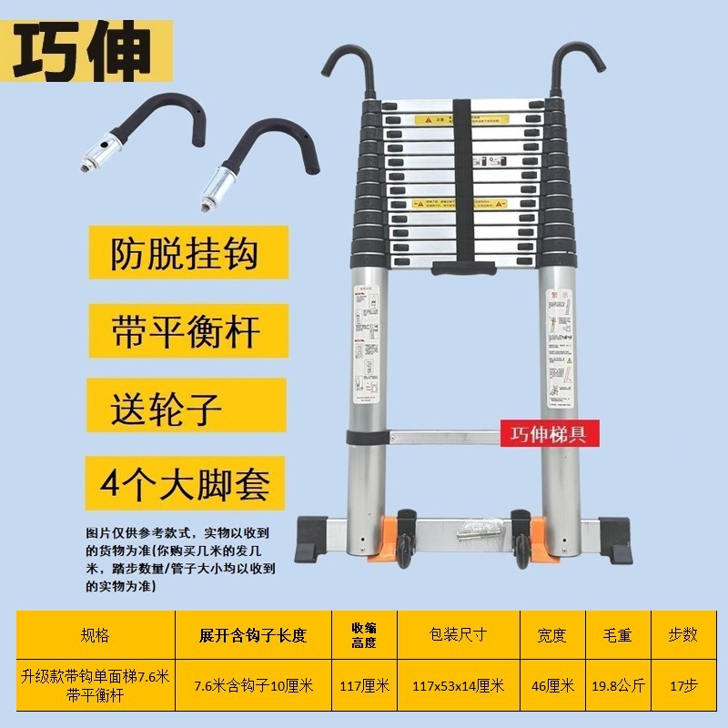 - Number of Steps: Ladder with hook and balance bar, straight ladder 7.6m (including hook height)